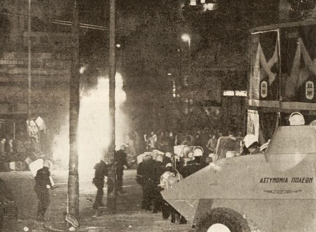 Για δεύτερη ημέρα συνεχίζεται η εξέγερση του Πολυτεχνείου. Γύρω από το εκπαιδευτικό ίδρυμα γίνονται πραγματικές μάχες. Η Αστυνομία με δακρυγόνα και πυροβολισμούς προσπαθεί να διαλύσει τον κόσμο. Ο ραδιοφωνικός σταθμός των φοιτητών κάνει έκκληση για φάρμακα, ιατρικά εργαλεία, γιατρούς και ασθενοφόρα. Γύρω στα μεσάνυχτα μπαίνουν στην Αθήνα στρατός και τανκς.