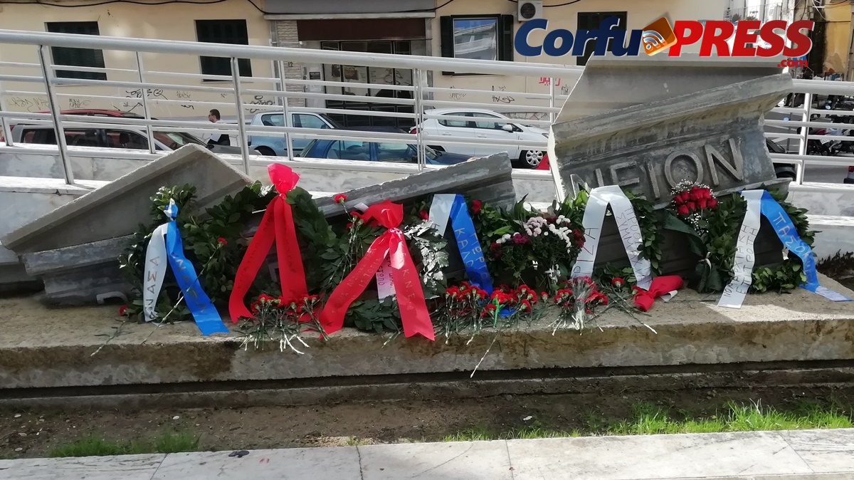 Καθώς, αντιπροσωπείες του ΣΥΡΙΖΑ, του ΠΑΣΟΚ, του ΚΚΕ, του ΜέΡΑ25, του Κεντρικού Δήμου, της περιφερειακής παράταξης ΑΝΑΣΑ, των δημοτικών παρατάξεων Πρώτα η Κέρκυρα, Κερκυραϊκή Συμμαχία και Εκκίνηση, αλλά και σωματεία του Εργατικού Κέντρου απέτισαν φόρο τιμής στους αγωνιστές του Πολυτεχνείου, καταθέτοντας στεφάνια ή λουλούδια στο μνημείο που βρίσκεται έξω από το κτίριο της πρώην Νομαρχίας