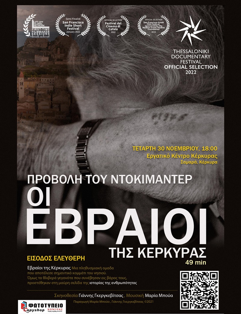 Το ντοκιμαντέρ “Οι Εβραίοι της Κέρκυρας ”έκανε το ντεμπούτο του στο “Φεστιβάλ Κινηματογράφου Θεσσαλονίκης” και συνεχίζει την Φεστιβαλική του πορεία σε φεστιβάλ Ελλάδας και Εξωτερικού.