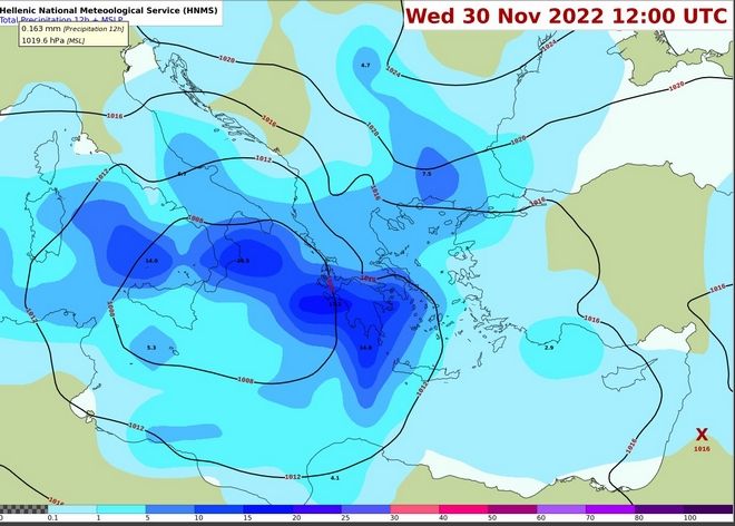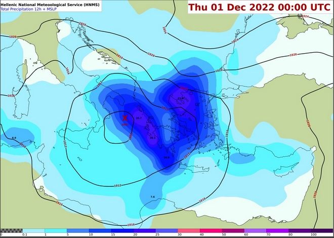 Από τις νυχτερινές ώρες της Τρίτης (29-11-2022) και μέχρι τις μεσημβρινές ώρες της Πέμπτης (01-12-2022) θα εκδηλωθούν ισχυρές βροχές και καταιγίδες στο νότιο Ιόνιο, τη δυτική και νότια Πελοπόννησο και τη δυτική Κρήτη.