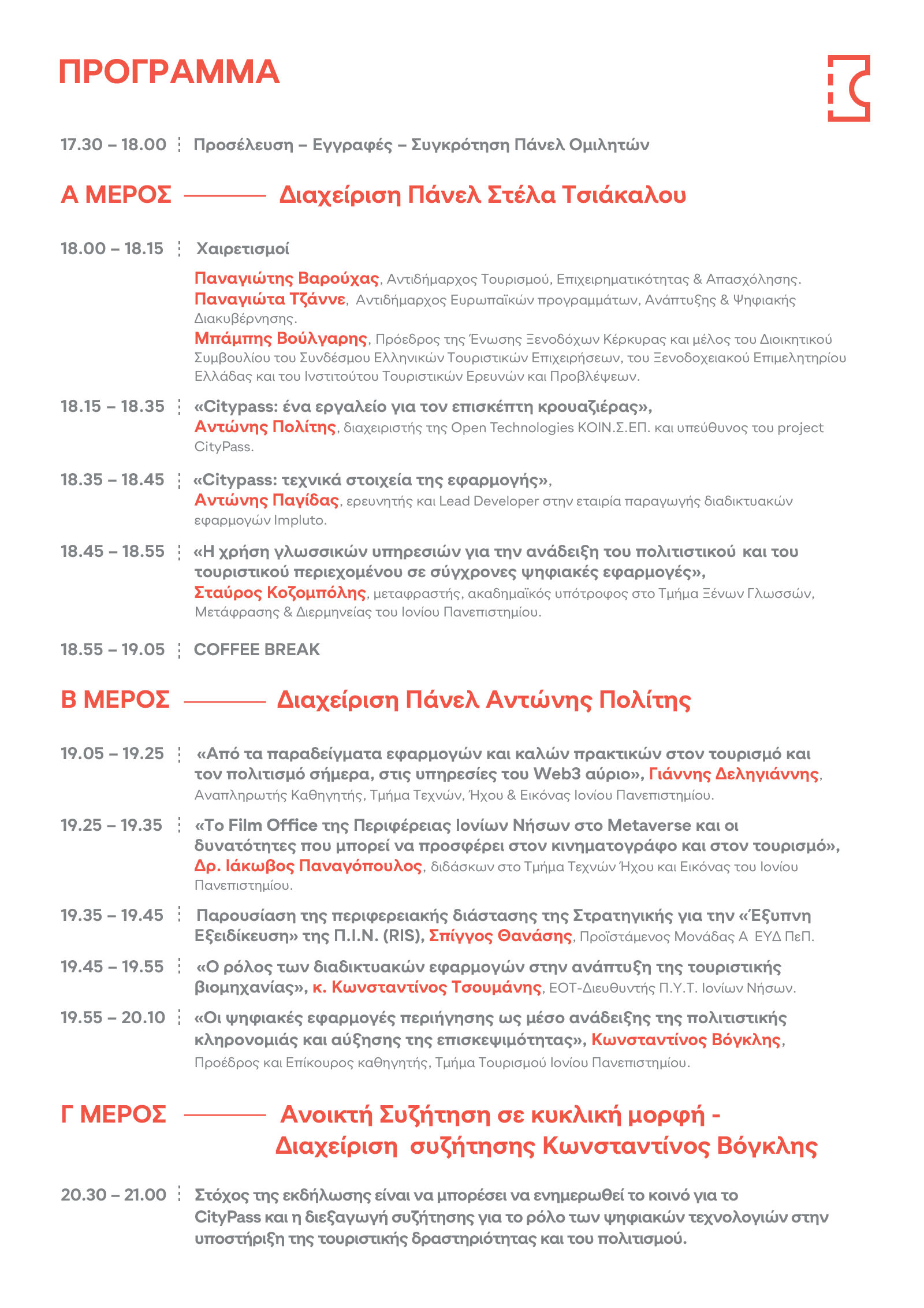 Στην εκδήλωση θα συμμετέχουν εκπρόσωποι από τον τουριστικό κλάδο, τον πολιτισμό και το Ιόνιο Πανεπιστήμιο.