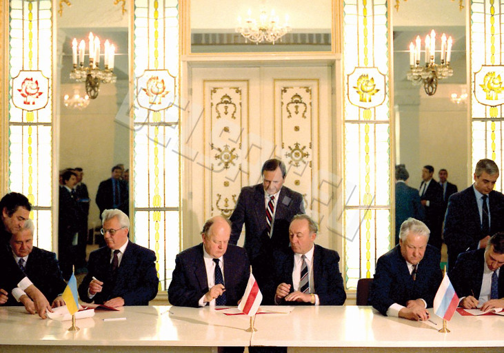 Υπογράφεται η «ληξιαρχική πράξη θανάτου» της Σοβιετικής Ένωσης, με την δημιουργία της Κοινοπολιτείας Ανεξαρτήτων Χωρών (Συμφωνία της Μπελαβέζα).