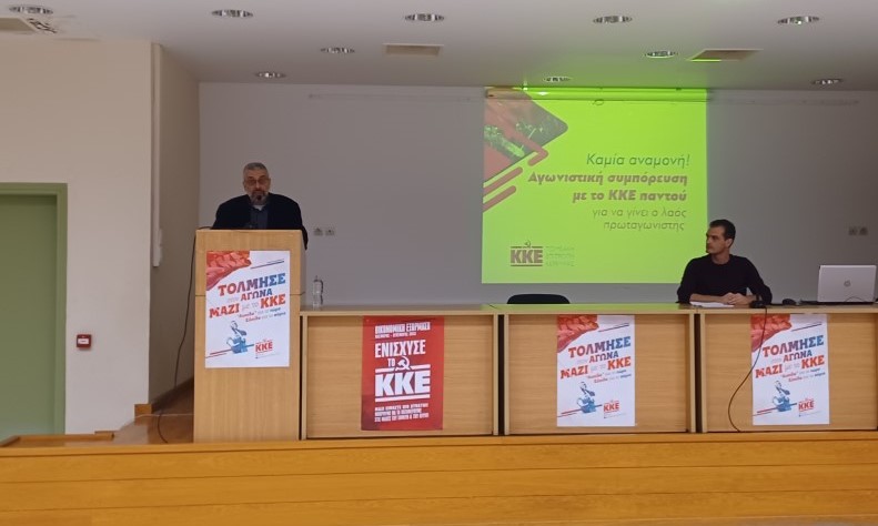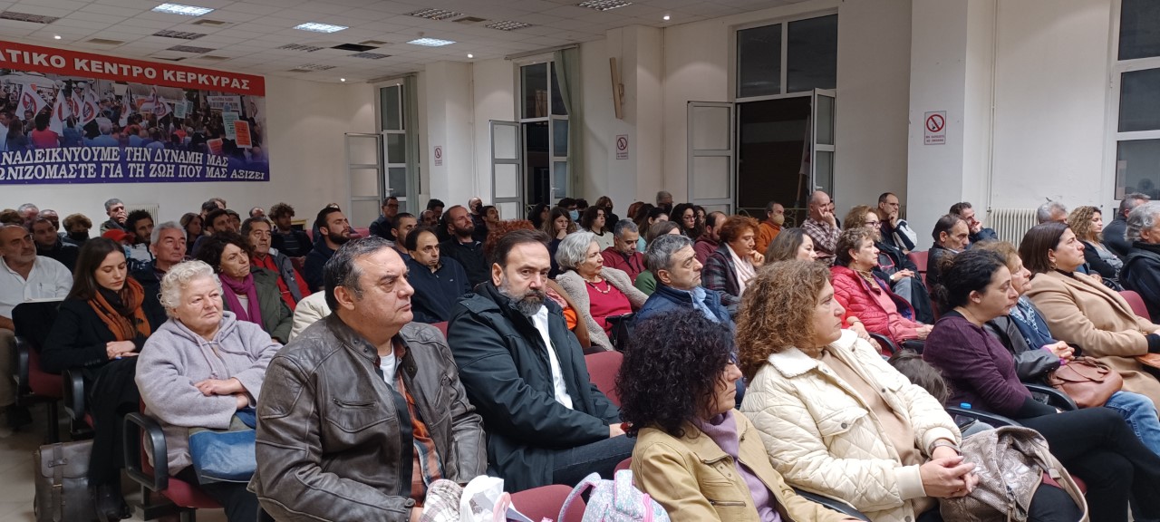 Κάλεσμα σταθερής αγωνιστικής συμπόρευσης με το ΚΚΕ στο λαϊκό κίνημα και στις εκλογικές αναμετρήσεις του επόμενου διαστήματος, ως απάντηση στα αδιέξοδα του σάπιου καπιταλιστικού συστήματος, απηύθυνε ο Κύριλλος Παπασταύρου, μέλος του ΠΓ της ΚΕ του ΚΚΕ από την αίθουσα του Εργατικού Κέντρου Κέρκυρας, στα πλαίσια της πολιτικής συγκέντρωσης της ΤΕ Κέρκυρας το απόγευμα της Πέμπτης 08/12. Την εκδήλωση άνοιξε ο Γιάννης Μπορμπότης, γραμματέας της ΤΕ Κέρκυρας του ΚΚΕ.