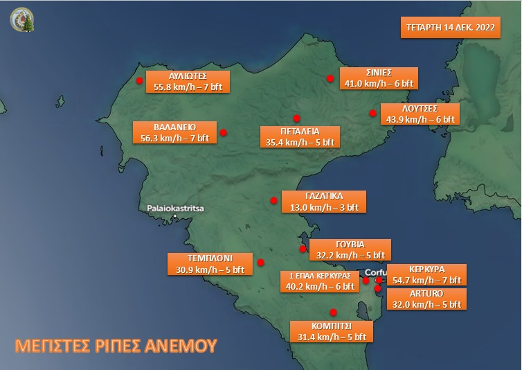 – 54.7 km/hr – 7 μποφόρ στην ΠΟΛΗ της Κέρκυρας