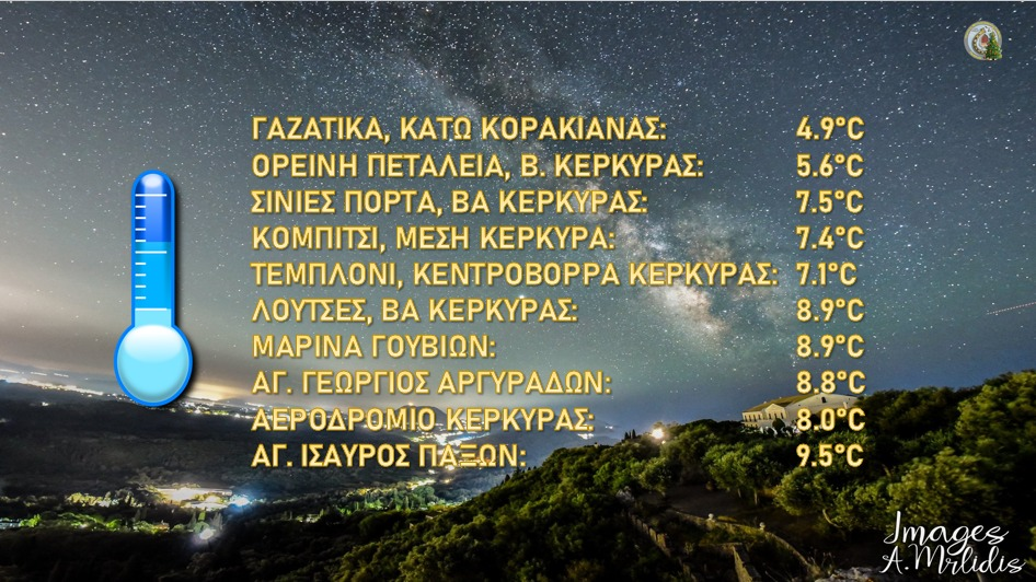 Αρκετά χαμηλές θερμοκρασίες καταγράφηκαν την Τετάρτη τα ξημερώματα σε περιοχές της Κέρκυρας.