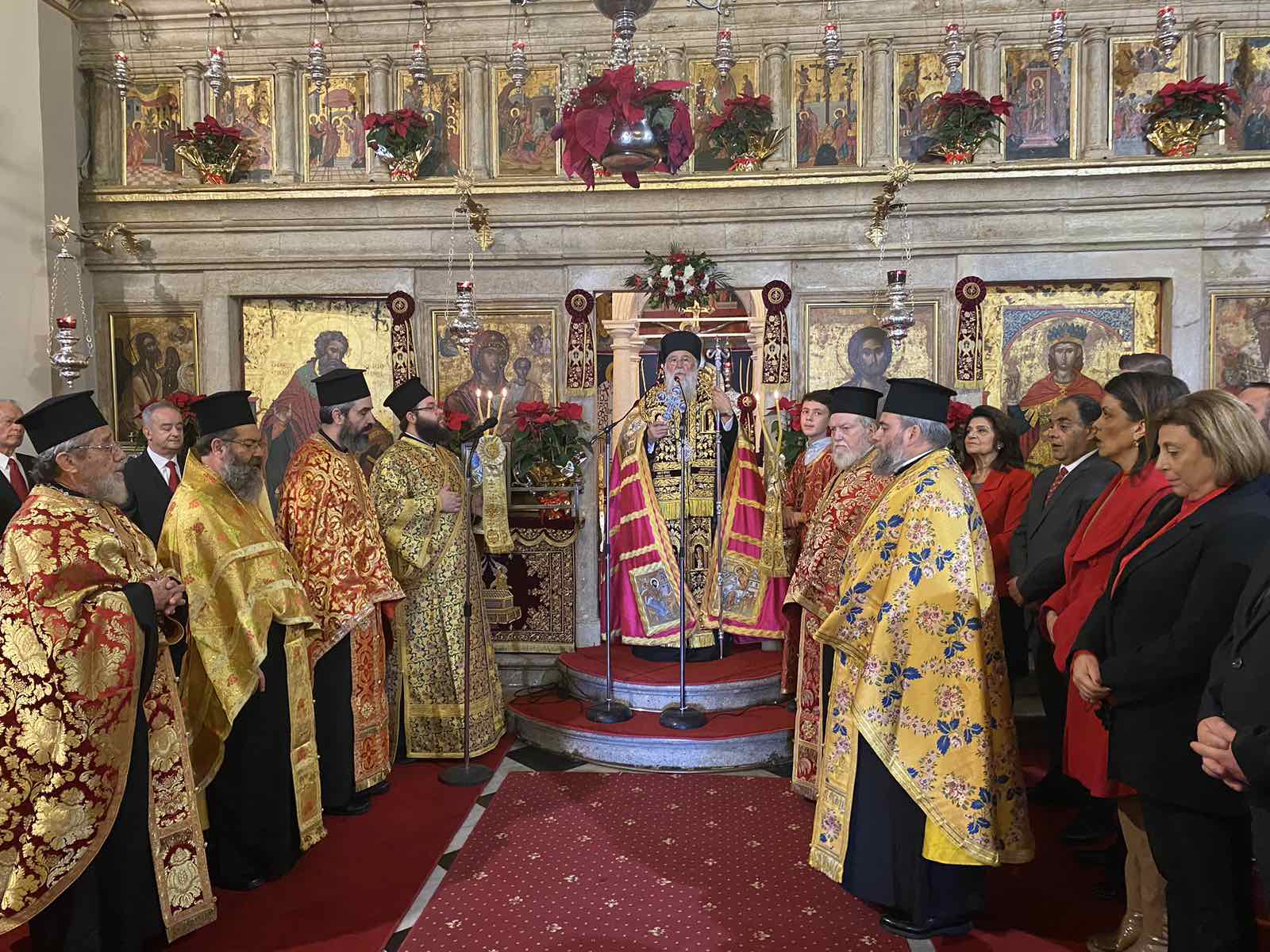 Στο τέλος της Θείας Λειτουργίας, ο Σεβασμιώτατος ευχήθηκε στο εκκλησίασμα για υγεία, αισιοδοξία, ελπίδα, ειρήνη και χαρά στην ανθρωπότητα. Υπογράμμισε ότι εάν εμείς στην πατρίδα μας δεν επανέλθουμε στην αληθινή κοινωνία με τον αληθινό θεό, τον Ιησού Χριστό, όλες οι ευχές θα παραμένουν ανεκπλήρωτες, διότι τα πάντα απορρέουν από εκείνον.
