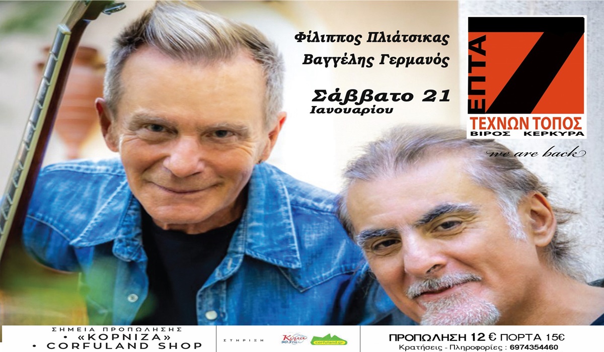 Ο Φίλιππος Πλιάτσικας και ο Βαγγέλης Γερμανός θα εμφανιστούν στο ΕΠΤΑ, Τεχνών Τόπος