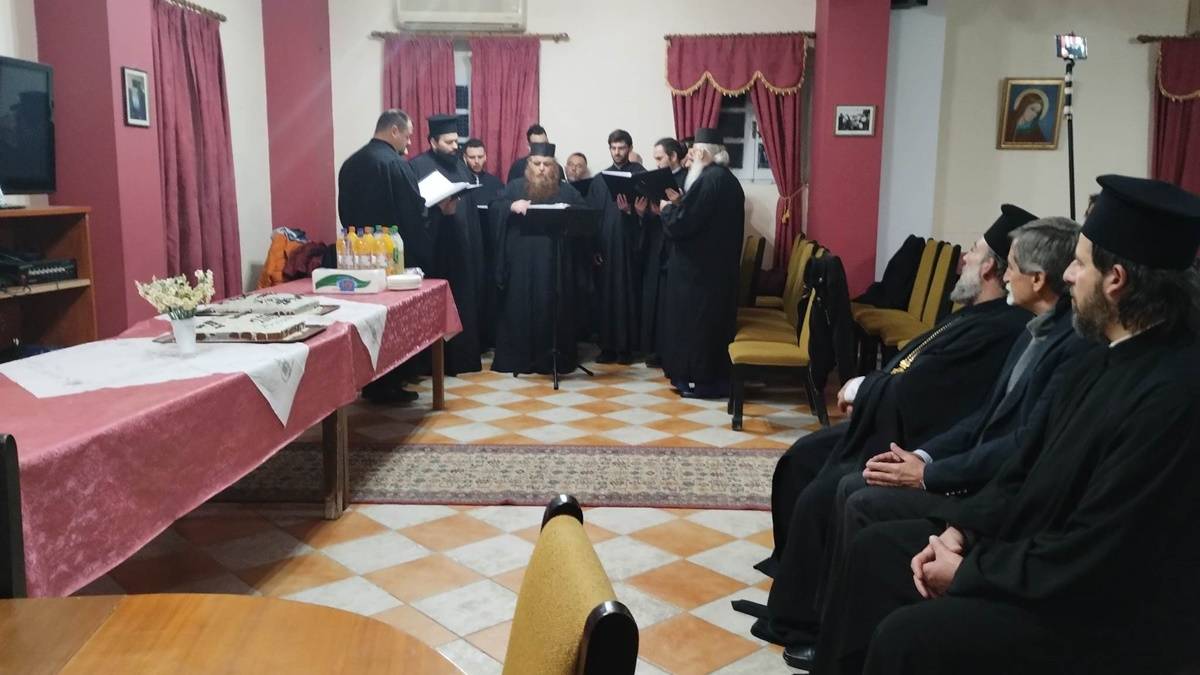 Την ακολουθία της ευλογίας τέλεσε ο Πανοσιολ. Αρχιμ. π. Θεολόγος Σκορδίλης, ο οποίος ευχήθηκε στα μέλη και τους φίλους της Χορωδίας, μαζί με τον Διάκονο π. Νικόλαος Σκορδίλη.