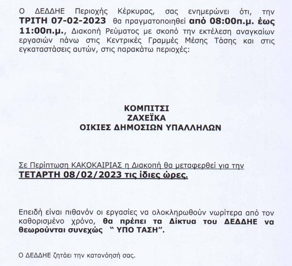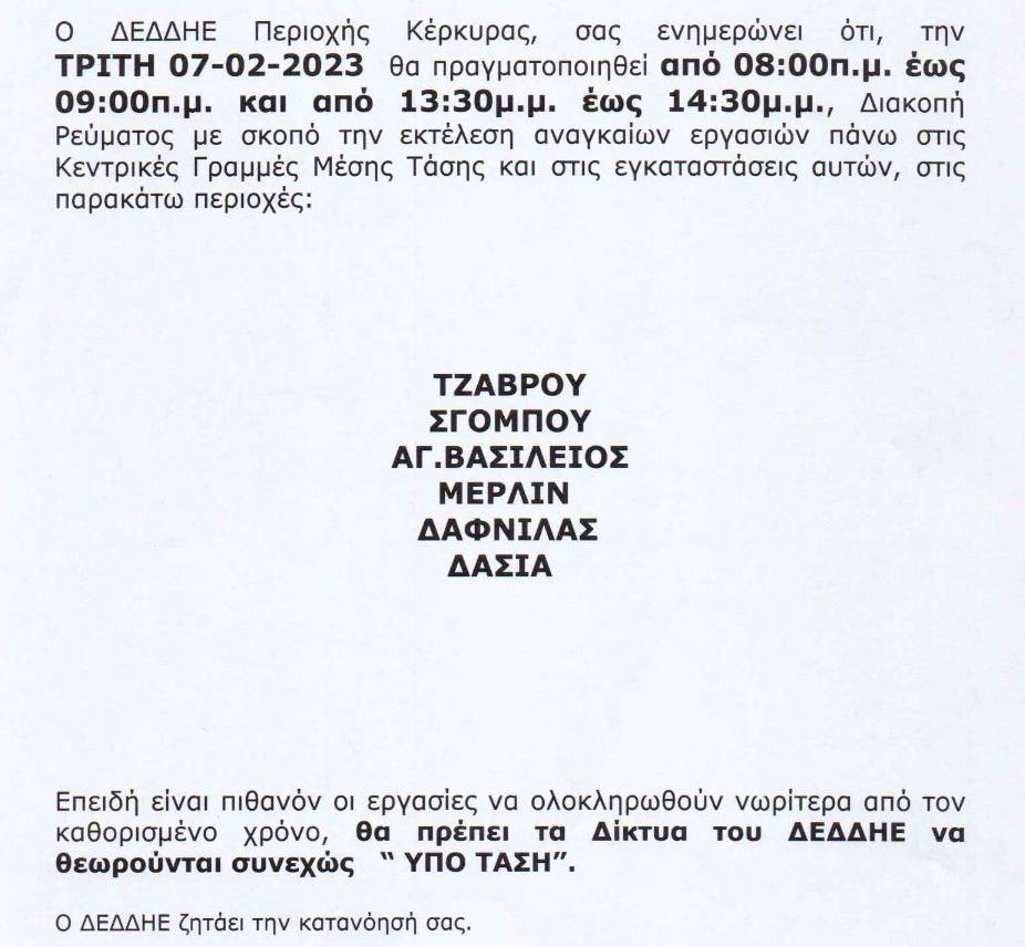 ΚΟΙΝΩΝΙΑΕΛΕΥΘΕΡΟΕΙΔΗΣΕΙΣ Διακοπές ρεύματος σε αρκετές περιοχές, την Τρίτη H διακοπή ρεύματος θα γίνει λόγω εργασιών στις κεντρικές γραμμές μέσης τάσης. Last updated: 03/02/2023 08:28 CorfuPress.com Published: 03/02/2023 Share SHARE H διακοπή ρεύματος θα γίνει λόγω εργασιών στις κεντρικές γραμμές μέσης τάσης. Διακοπή ρεύματος τη Δευτέρα-Δείτε που Που θα γίνει διακοπή ρεύματος την Τετάρτη Που θα γίνει διακοπή ρεύματος την Τετάρτη Επιστολή Επιμελητηρίου προς ΔΕΔΔΗΕ για τις πολύωρες διακοπές ρεύματος Που θα γίνουν προγραμματισμένες διακοπές ρεύματος το διάστημα 23-25 Αυγούστου Share This Article Facebook Whatsapp Whatsapp Email Copy Link Print Previous Article Την Παρασκευή 3 Φεβρουαρίου γιορτάζει… Next Article Κλειστή η κεντρική είσοδος στο δημοτικό Κοντοκαλίου, λόγω πτώσης σοβάδων… Δεν υπάρχουν Σχόλια Δεν υπάρχουν Σχόλια Αφήστε μια απάντηση Ακύρωση απάντησηςΗ ηλ. διεύθυνση σας δεν δημοσιεύεται. Τα υποχρεωτικά πεδία σημειώνονται με *Σχόλιο * Όνομα * Email * Ιστότοπος Αποθήκευσε το όνομά μου, email, και τον ιστότοπο μου σε αυτόν τον πλοηγό για την επόμενη φορά που θα σχολιάσω. ΑναζήτησηΑναζήτησηRecent PostsΌλα τα μάτια στον Θοδωρή, τον καπετάνιο μας! Τη Δευτέρα 22 Σεπτεμβρίου γιορτάζει… Σαν Σήμερα 22/9: Τα σημαντικότερα γεγονότα… Η πρόγνωση του καιρού Έφηβοι Ιονίου: Με περίπατο, συνεχίζουν στο Rising Stars! Recent CommentsΧωρίς σχόλια για εμφάνιση.