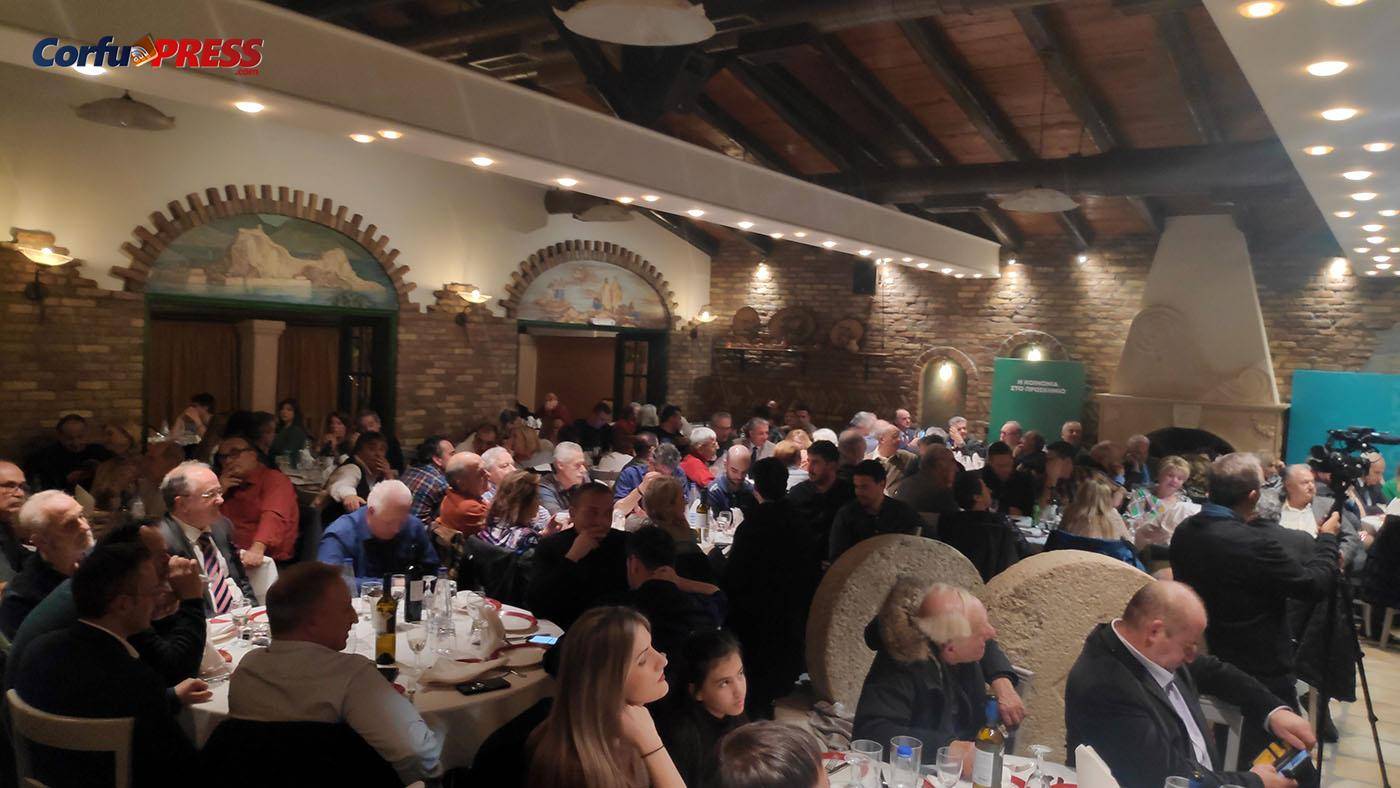 Κοστούμια στους άνδρες και τουαλέτες στις γυναίκες, συνεστίαση με ταμπλ-ντοτ μενού, ορχήστρα με λαϊκά και ελαφρολαϊκά, φωτογράφος “άρπα-κόλα” που γύριζε στο τέλος τα τραπέζια για να πουλήσει τις φωτογραφίες του στις παρέες. Έστω και χωρίς… τούρτα, αλλά με… πίτα, η βραδιά θα μπορούσε να θυμίζει και συνεστίαση γάμου, με τους υποψήφιους και υποψήφιες για την βουλευτική ψήφο να γυρίζουν (κατά μόνας, όχι μαζί, έ;) από τραπέζι σε τραπέζι για να τσουγκρίσουν ένα ποτήρι κρασί με τους συμμετέχοντες στη βραδιά!
