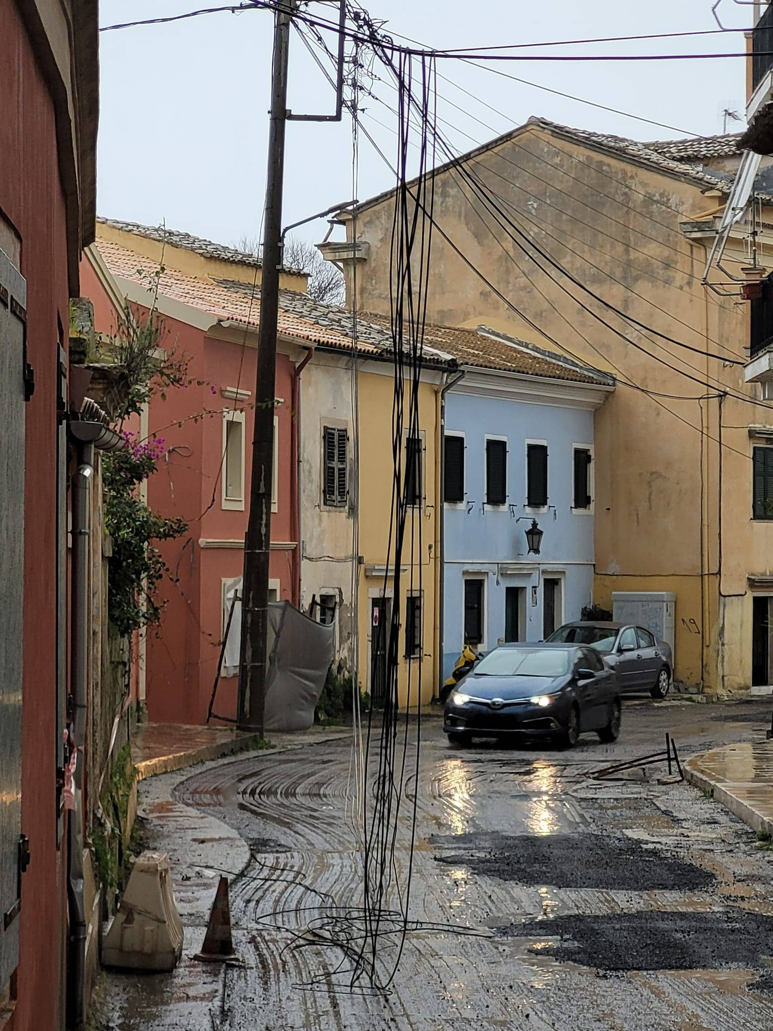 Δείγμα… κουλτούρας η απουσία υπογειοποίησης δικτύων σε πολλές συνοικίες στον αστικό ιστό της πόλης της Κέρκυρας και, φυσικά, πολλές φορές τα αποτελέσματα ορατά δια… γυμνού καλωδίου!