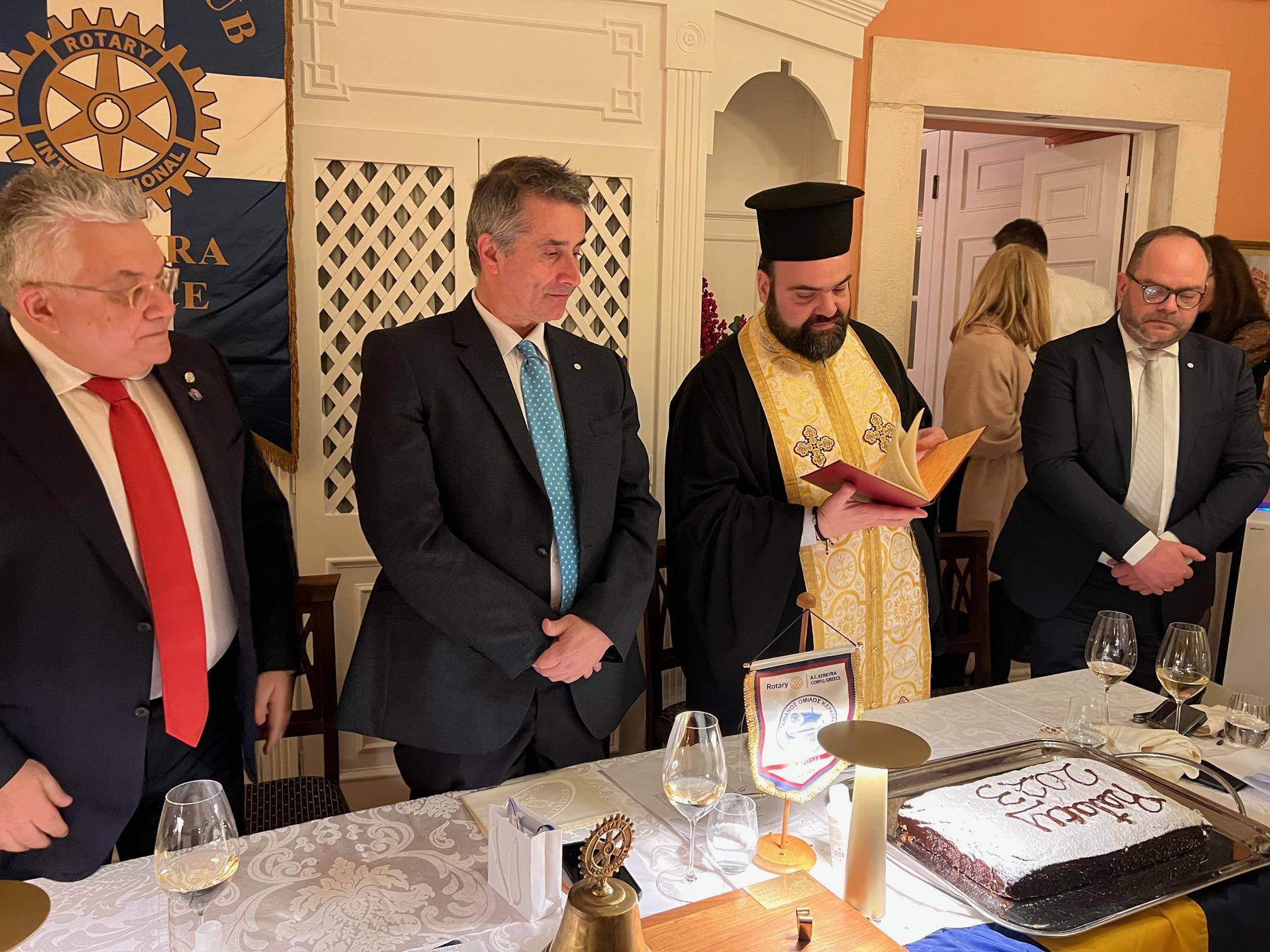 Ο Πρύτανης του Αριστοτελείου Πανεπιστημίου Θεσσαλονίκης καθηγητής Νικόλαος Παπαϊωάννου κόσμησε το βήμα του Ροταριανού Ομίλου Κερκύρας την περασμένη Τετάρτη 1 Φεβρουαρίου στην πανηγυρική συνεστίαση που πραγματοποιήθηκε για την κοπή της πρωτοχρονιάτικης πίτας του Ομίλου.