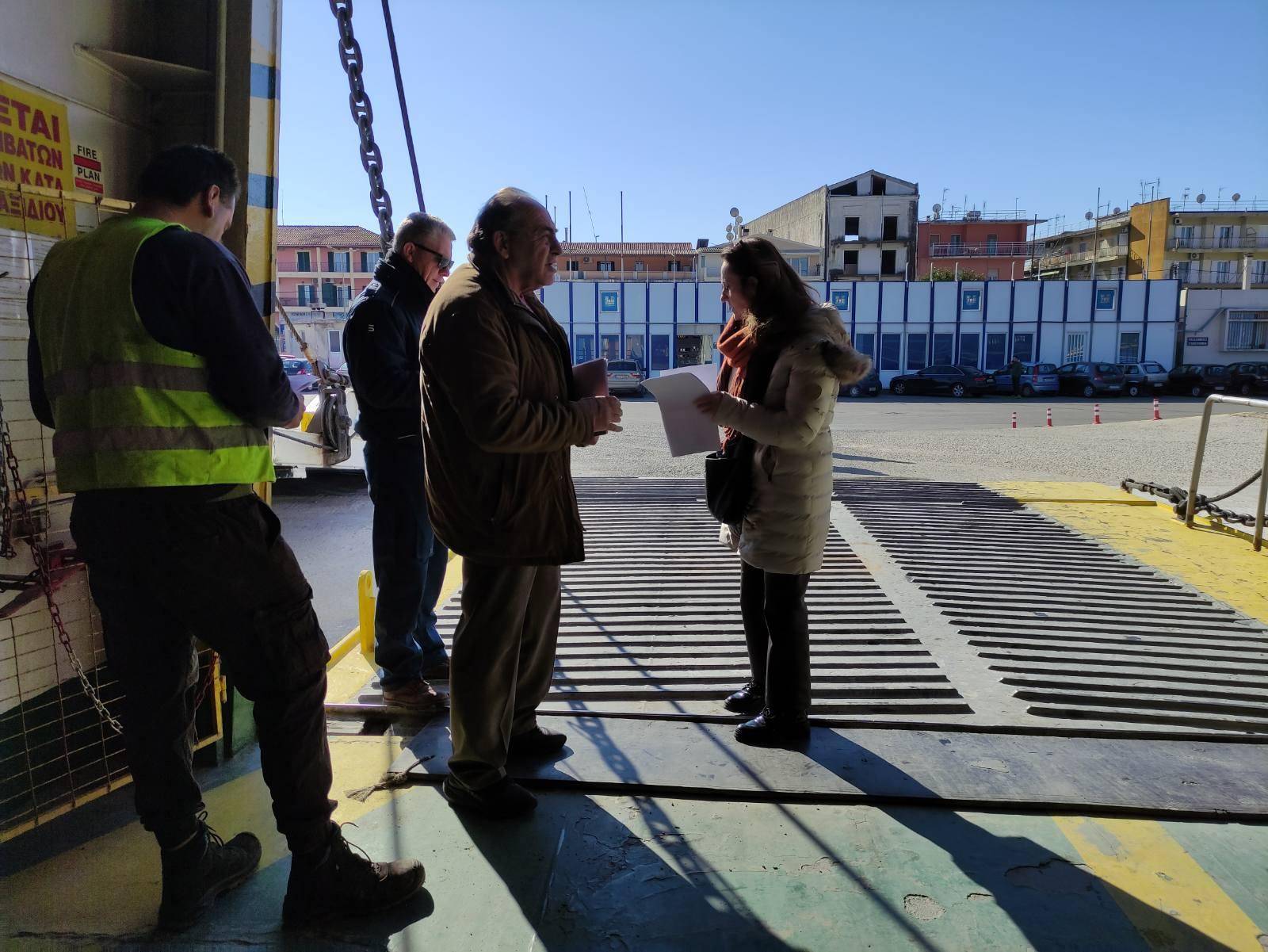 Αντιπροσωπία του ΚΚΕ, με επικεφαλής την Αλεξάνδρα Μπαλού και τη Μυρσίνη Χαραλάμπους, υποψήφιες Βουλευτές Κέρκυρας, πραγματοποίησε περιοδεία, την Τρίτη 7 Φεβρουαρίου, σε πλοία και στους χώρους εργασίας του ΟΛΚΕ και του Τελωνείου.