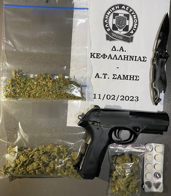 Συνελήφθη, το Σάββατο (11.02.2023), το απόγευμα, στην Κεφαλονιά, από αστυνομικούς του Αστυνομικού Τμήματος Σάμης, ημεδαπός και σε βάρος του σχηματίσθηκε δικογραφία για κατοχή ναρκωτικών ουσιών και παράβαση της νομοθεσίας για τα όπλα.