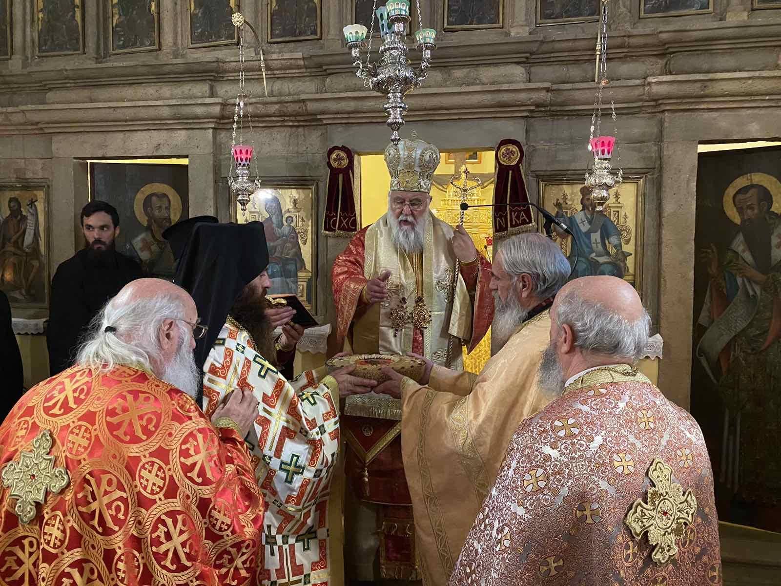 Ανήμερα της εορτής κατά την Θεία Λειτουργία, ιερούργησε ο αρχιμανδρίτης π. Χριστόδουλος Τριαντάφυλλος μαζί με πατέρες της αδελφότητος και άλλους κληρικούς, και ομίλησε ο Γενικός Αρχιερατικός Επίτροπος της Ιεράς Μητροπόλεως, πρωτ. π. Θεμιστοκλής Μουρτζανός.