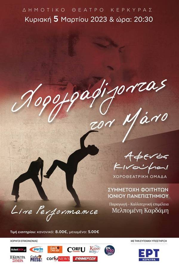 Σύγχρονος Χορός, Λόγος και Εικόνα, ζωντανή μουσική και τραγούδι από φοιτητές του Μουσικού Τμήματος του Ιονίου Πανεπιστημίου, θα ζωντανέψουν στη σκηνή του Δημοτικού Θεάτρου τη νοσταλγική και γεμάτη επαναστατική δύναμη μουσική του Μάνου.