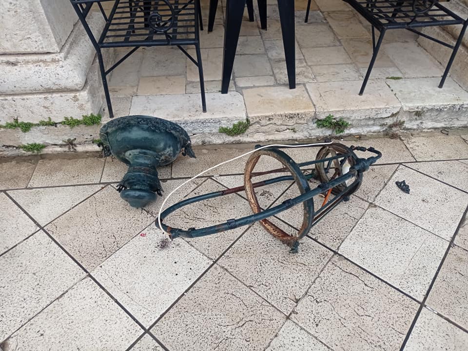 Το πρωί της Τρίτης ένα από τα φανάρια του Λιστόν ξεκόλλησε από τη θέση του έπεσε στο έδαφος.