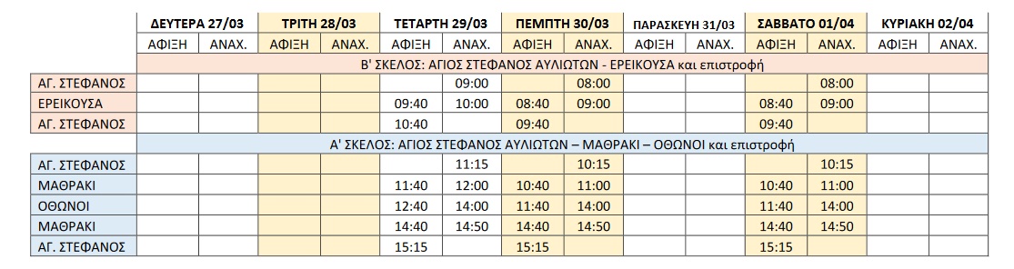 Προκειμένου να εξυπηρετηθεί το επιβατικό κοινό της δρομολογιακής γραμμής ΑΓΙΟΣ ΣΤΕΦΑΝΟΣ-ΕΡΕΙΚΟΥΣΑ-ΜΑΘΡΑΚΙ-ΟΘΩΝΟΙ και επιστροφή λόγω ισχυρών