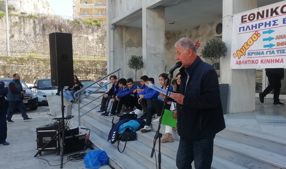 Συγκέντρωση διαμαρτυρίας για το μερικό λουκέτο στο Εθνικό Αθλητικό Κέντρο Κέρκυρας πραγματοποιήθηκε την Μεγάλη Τετάρτη μπροστά από το κτίριο της Περιφερειακής Διοίκησης, μετά από κάλεσμα του αθλητικού κινήματος.