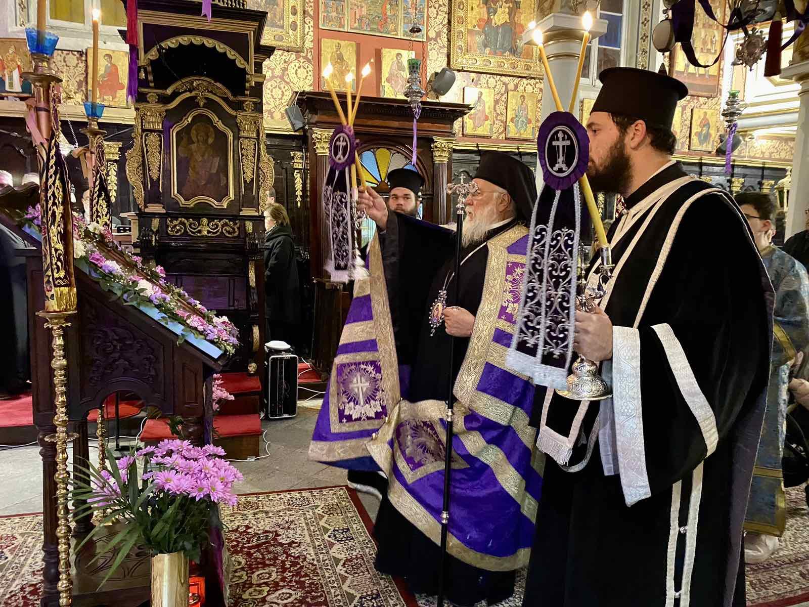 Ο Σεβασμιώτατος στην ομιλία του υπογράμμισε δύο πράξεις, οι οποίες έγιναν λίγο προ του Πάθους του Κυρίου μας στον ίδιο τόπο, στο σπίτι του Σίμωνος του Φαρισαίου, όπου ο Κύριος μας είχε ιδιαιτέρα φιλική σχέση μετά του Σίμωνος.