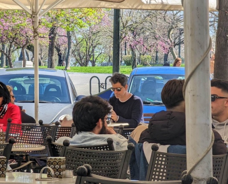 Ο κερκυραίος τραγουδιστής παραδοσιακά επίσης επιστρέφει στο νησί για Πάσχα. Είναι κι οι γονείς του εδώ, τα αδέλφια του και οι γιορτινές ημέρες είναι ευκαιρία να βρεθεί κοντά στην οικογένειά του. Ο φακός του corfuland.gr τον συνέλαβε το μεσημέρι της Μ. Τετάρτης να πίνει τον καφέ του στο Λιστόν μόνος του, αλλά είναι σίγουρο ότι μαζί του βρίσκονται η σύζυγός του Κάτια Ζυγούλη και τα παιδιά τους.