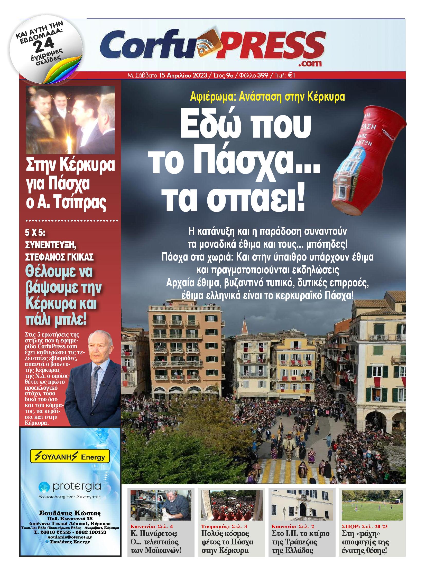 Mην χάσετε την εφημερίδα CorfuPress.com του Μεγάλου Σαββάτου που περιλαμβάνει πολλά και ενδιαφέροντα θέματα στις 24 έγχρωμες σελίδες της.