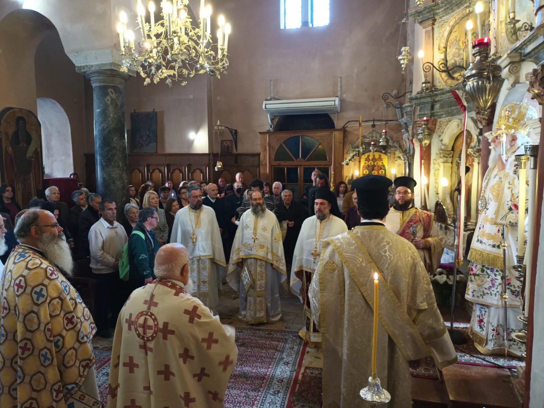 Κατά την Θεία Λειτουργία, ο ναός και το προαύλιο του ιερού ναού ήταν υπερπλήρης πιστών. Παρόντες στην Θεία Λειτουργία ήταν και οι υποψήφιοι πολιτευτές και άλλοι τοπικοί παράγοντες.