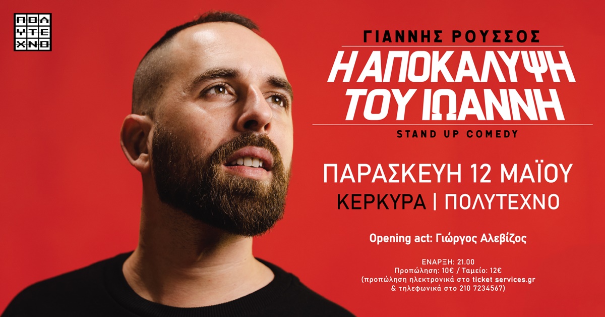 Προπώληση: 10 €, ταμείο: 12 €. Στο ΠΟΛΥΤΕΧΝΟ, Σχολεμβούργου 39, Κέρκυρα, την Παρασκευή 12 Μαϊου. Ώρα έναρξης: 21.00. Προπώληση ηλεκτρονικά στο ticket services.gr