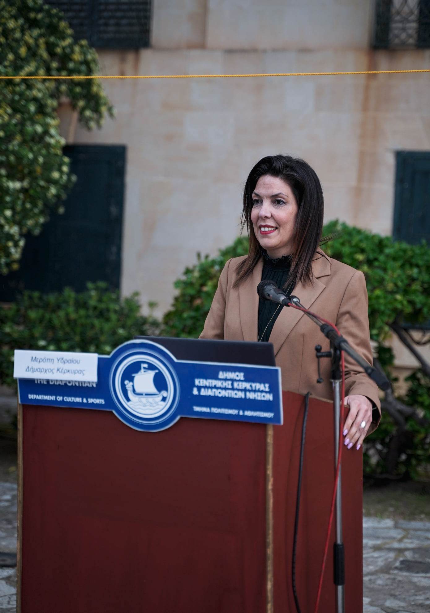Στον χαιρετισμό της η Δήμαρχος αφού ευχαρίστησε τον ΟΒΙ και το Υπουργείο Ανάπτυξης και Επενδύσεων, τον EUIPO, όπως και στελέχη της τοπικής αυτοδιοίκησης τα οποία θα συμβάλλουν στην εκπλήρωση του Έργου, σημείωσε πως πολύ συνειδητά η Κέρκυρα μπαίνει στο Πρόγραμμα ως η 3η αυθεντική πόλη της Ελλάδας.