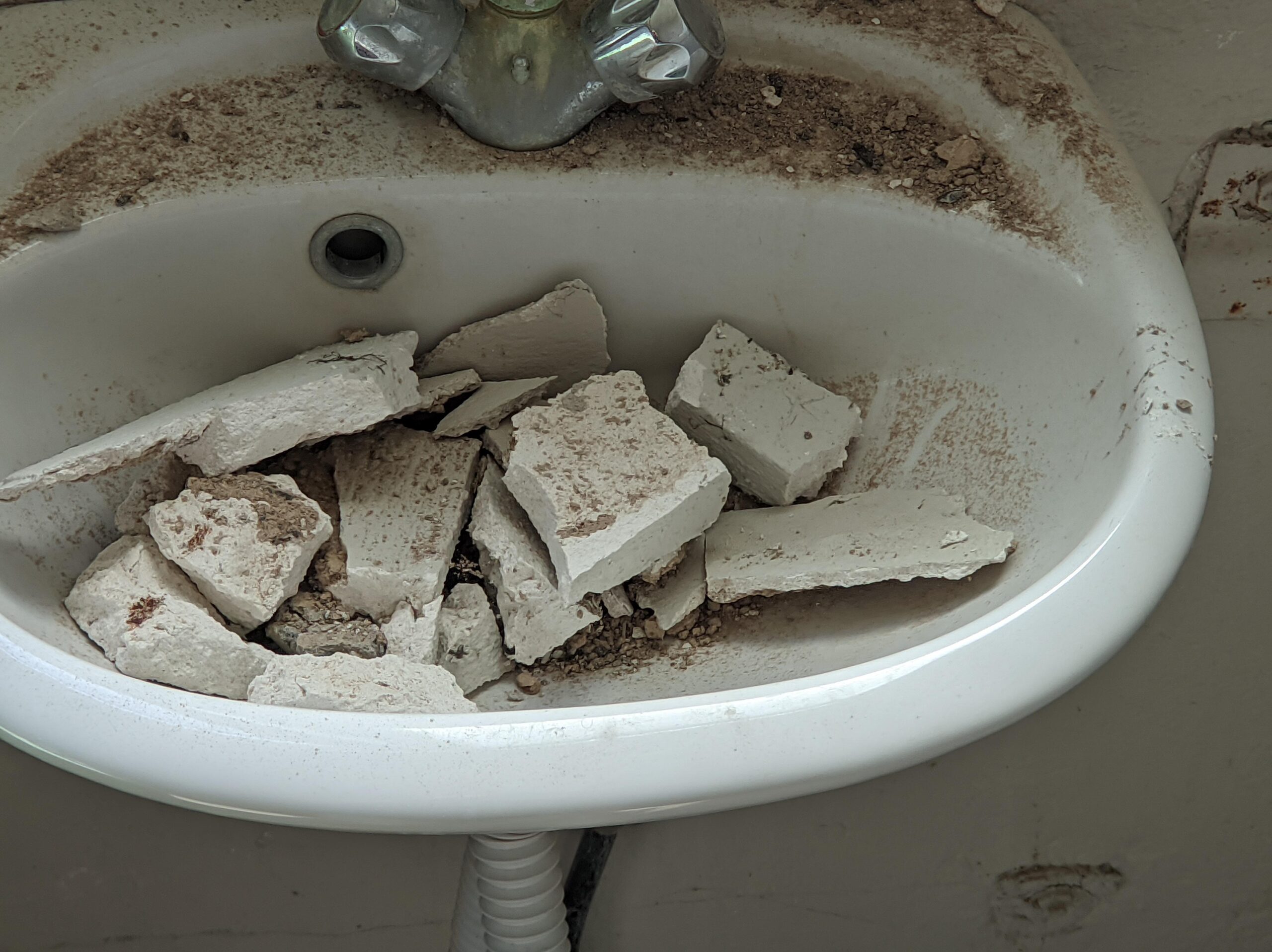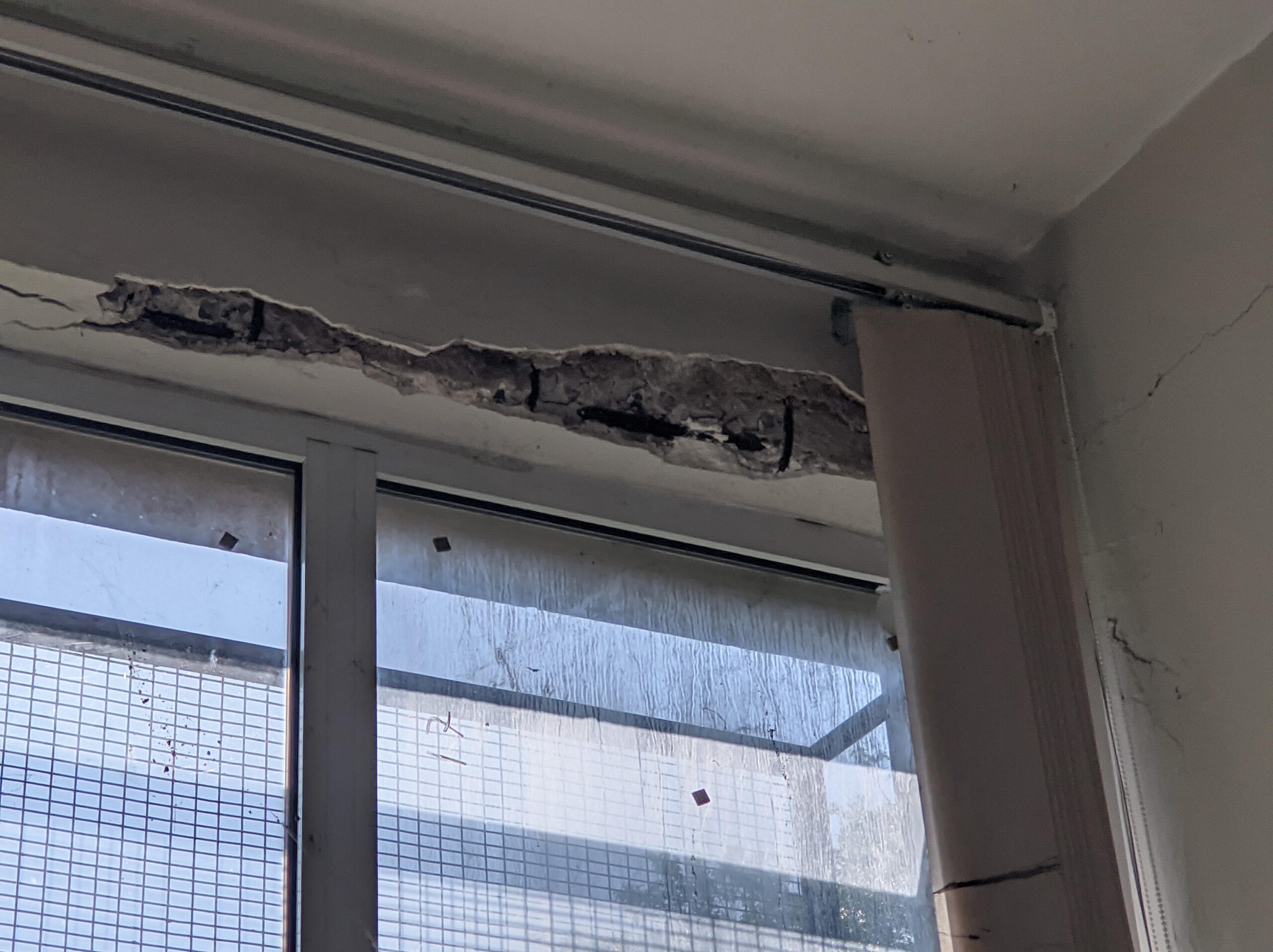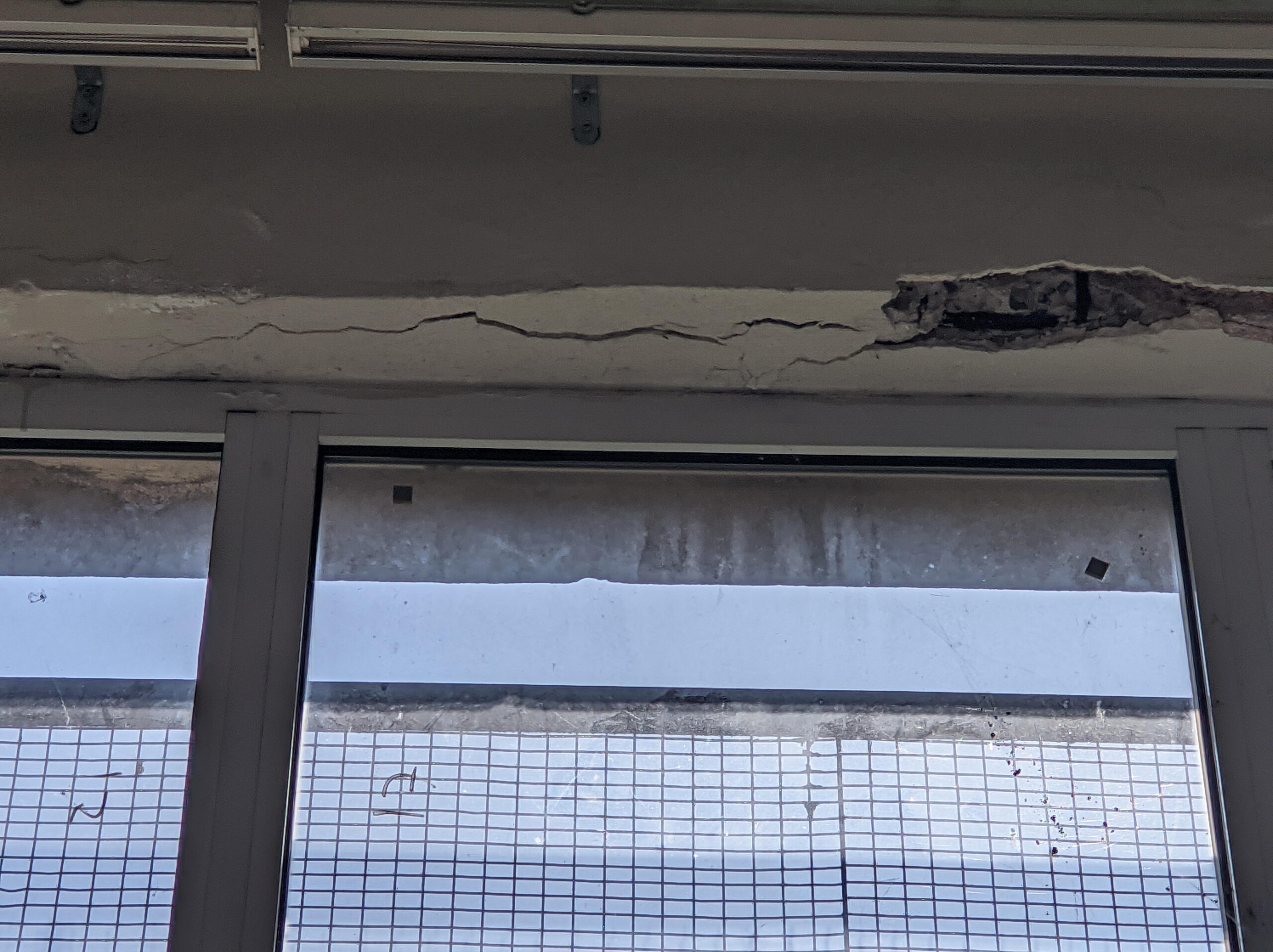 Ο μικρός αυτός σεισμός, που έγινε χθες στην Κέρκυρα, προκάλεσε πτώση ολόκληρων κομματιών από το ταβάνι σε εργαστήριο του 1ου ΕΠΑΛ Κέρκυρας και πιο συγκεκριμένα, από την κολώνα στήριξης, η οποία γέμισε ρωγμές, όπου και αποκαλύφθηκαν τα διαβρωμένα και κατασκουριασμένα σίδερα που τη στηρίζουν (όπως μπορεί να φανεί και στις φωτογραφίες).