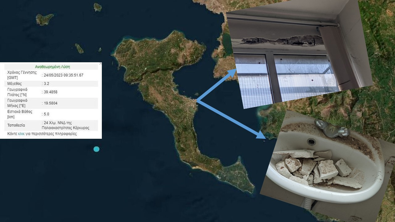 Μία ασθενής σεισμική δόνηση μόλις 3,2 βαθμών της κλίμακας Ρίχτερ, σε εστιακό βάθος 5 χλμ. κάτω από την επιφάνεια της θάλασσας και πάνω από 20 χλμ. μακριά από την πόλη της Κέρκυρας, που μάλιστα δεν έγινε καν αισθητή από πολύ κόσμο, ήταν αρκετή για να προκαλέσει ζημιές και να πέσουν ολόκληρα κομμάτια σοβάδων από τοίχους του 1ου ΕΠΑΛ Κέρκυρας στο Μαντούκι!!!
