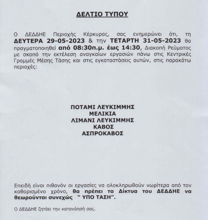 ΚΟΙΝΩΝΙΑΕΛΕΥΘΕΡΟΕΙΔΗΣΕΙΣ Διπλή διακοπή ρεύματος στο νότο Οι διακοπές θα πραγματοποιηθούν την Δευτέρα και την Τετάρτη λόγω εργασιών του ΔΕΔΔΗΕ. Last updated: 26/05/2023 09:24 CorfuPress.com Published: 26/05/2023 Share SHARE Οι διακοπές θα πραγματοποιηθούν την Δευτέρα και την Τετάρτη λόγω εργασιών του ΔΕΔΔΗΕ. Διακοπή ρεύματος τη Δευτέρα-Δείτε που Που θα γίνει διακοπή ρεύματος την Τετάρτη Που θα γίνει διακοπή ρεύματος την Τετάρτη Που θα γίνουν προγραμματισμένες διακοπές ρεύματος το διάστημα 23-25 Αυγούστου Έρχεται διακοπή ρεύματος στη Βόρεια Κέρκυρα Share This Article Facebook Whatsapp Whatsapp Email Copy Link Print Previous Article Υποψήφιος με την Υδραίου, ο Σπύρος Κάντας Next Article Πραγματοποιήθηκε η δράση για την έγκαιρη διάγνωση του ανευρύσματος κοιλιακής αορτής Δεν υπάρχουν Σχόλια Δεν υπάρχουν Σχόλια Αφήστε μια απάντηση Ακύρωση απάντησηςΗ ηλ. διεύθυνση σας δεν δημοσιεύεται. Τα υποχρεωτικά πεδία σημειώνονται με *Σχόλιο * Όνομα * Email * Ιστότοπος Αποθήκευσε το όνομά μου, email, και τον ιστότοπο μου σε αυτόν τον πλοηγό για την επόμενη φορά που θα σχολιάσω. ΑναζήτησηΑναζήτησηRecent PostsΌλα τα μάτια στον Θοδωρή, τον καπετάνιο μας! Τη Δευτέρα 22 Σεπτεμβρίου γιορτάζει… Σαν Σήμερα 22/9: Τα σημαντικότερα γεγονότα… Η πρόγνωση του καιρού Έφηβοι Ιονίου: Με περίπατο, συνεχίζουν στο Rising Stars! Recent CommentsΧωρίς σχόλια για εμφάνιση.