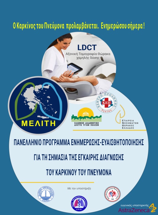 Για τον σκοπό αυτό, το Ελληνικό Διαδημοτικό Δίκτυο Υγιών Πόλεων του Π.Ο.Υ. σε συνεργασία με την Εταιρεία Νοσημάτων Θώρακος Ελλάδας – ΕΝΘΕ ξεκινάει στους Δήμους-μέλη του Δικτύου, πανελλήνιο Πρόγραμμα ενημέρωσης και ευαισθητοποίησης του πολίτη για την αξία της πρώιμης διάγνωσης του ΚτΠ με τον διακριτικό τίτλο «ΜΕΛΙΤΗ».