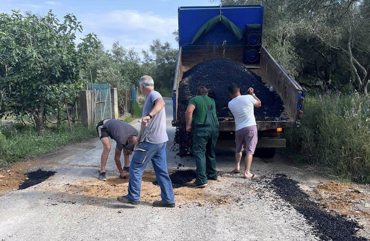 Σε μία αξιέπαινη πρωτοβουλία προχώρησαν κάτοικοι του Άη Μαθιά, οι οποίοι προμηθεύτηκαν άσφαλτο και τσιμέντο, πήραν τα μηχανήματα και τα φορτηγά τους και έκλεισαν λακούβες στο δρόμο που οδηγεί στη Λιμνοθάλασσα Κορισσίων στο Χαλικούνα. “Εθελοντές για όσο αντέχουμε, με πρωτοβουλία” γράφει η Βιβή Γουλουμή, που ανήρτησε και τις σχετικές φω