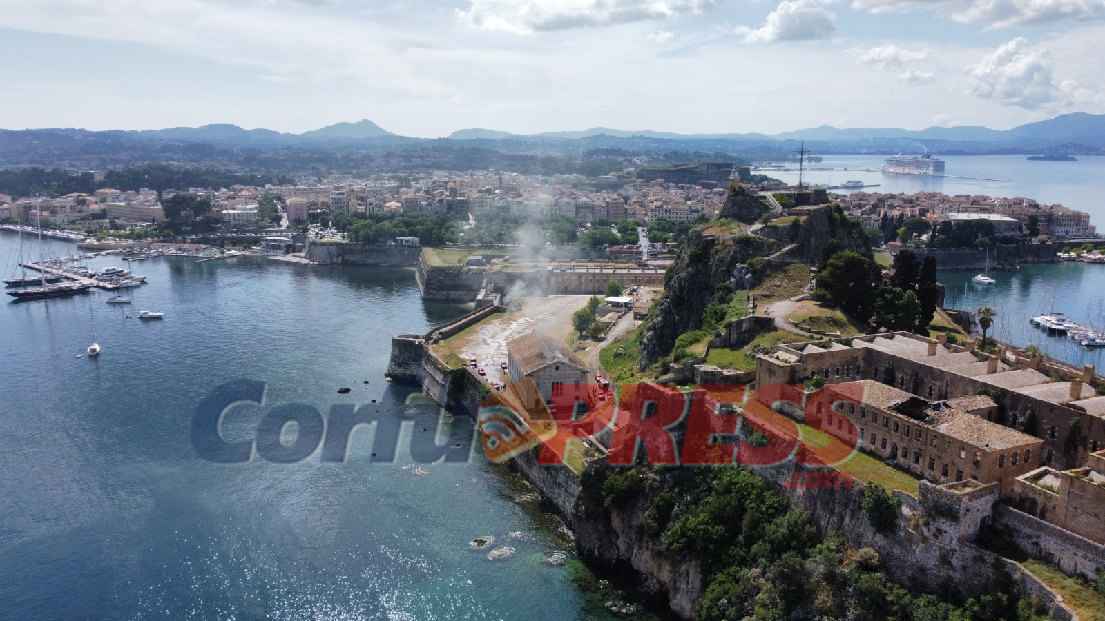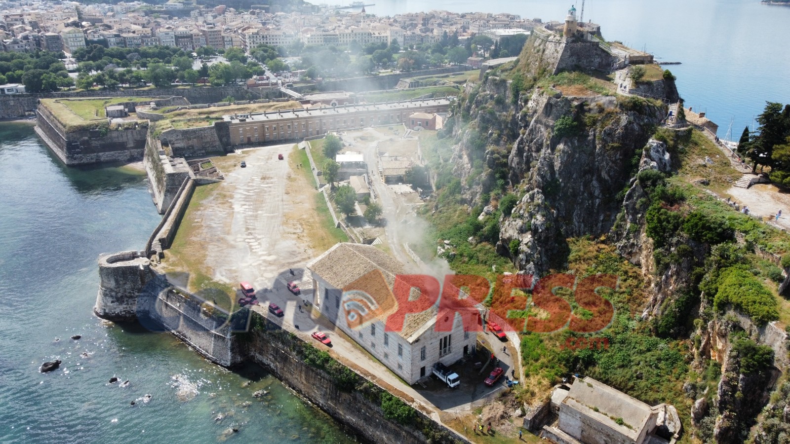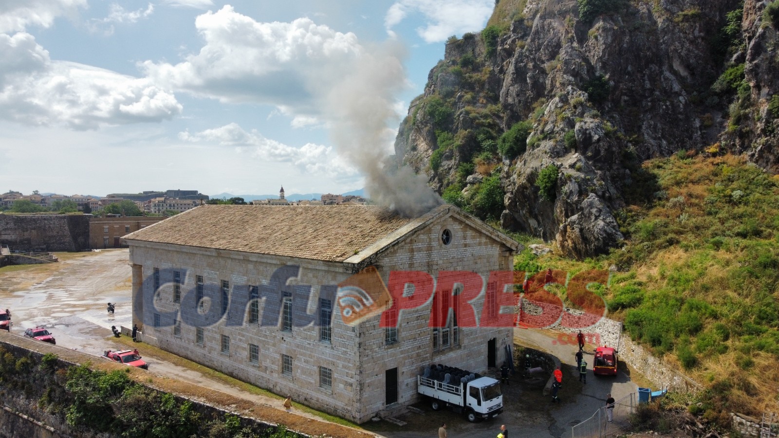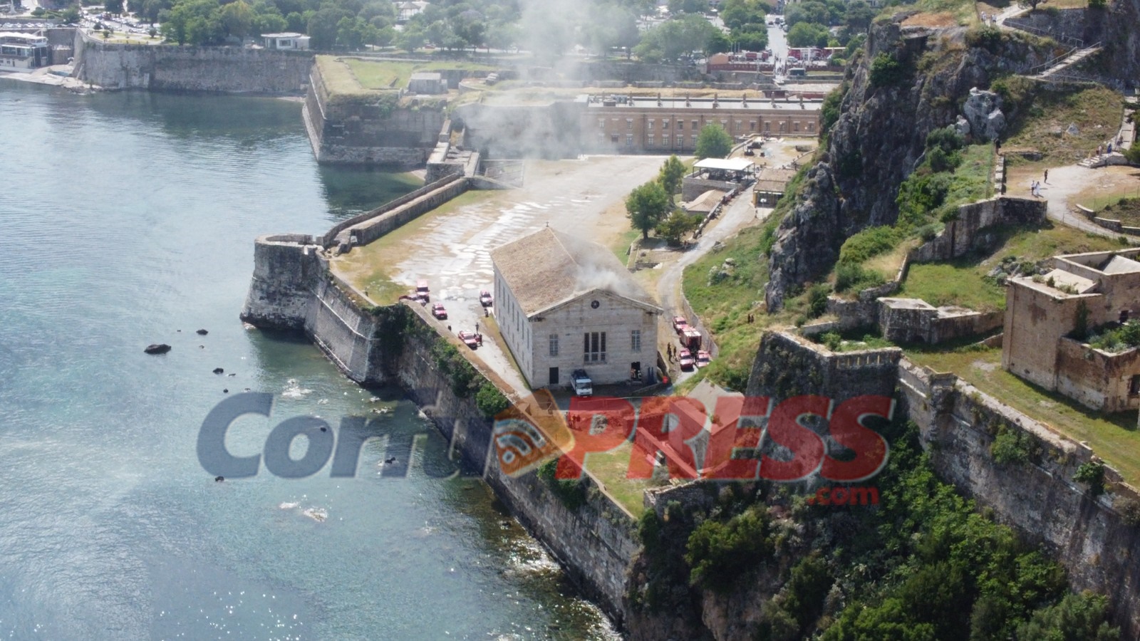 Τις πρώτες κρίσιμες στιγμές υπήρχε μεγάλη δυσκολία στο να εισέλθουν μεγάλα πυροσβεστικά οχήματα μέσα στο φρούριο καθώς δεν χωρούσαν να περάσουν από την τάφρο, έτσι επιστρατεύτηκε το γερανοφόρο όχημα του Δήμου Κεντρικής Κέρκυρας για να βοηθήσει στη ρίψη νερού από την οροφή.