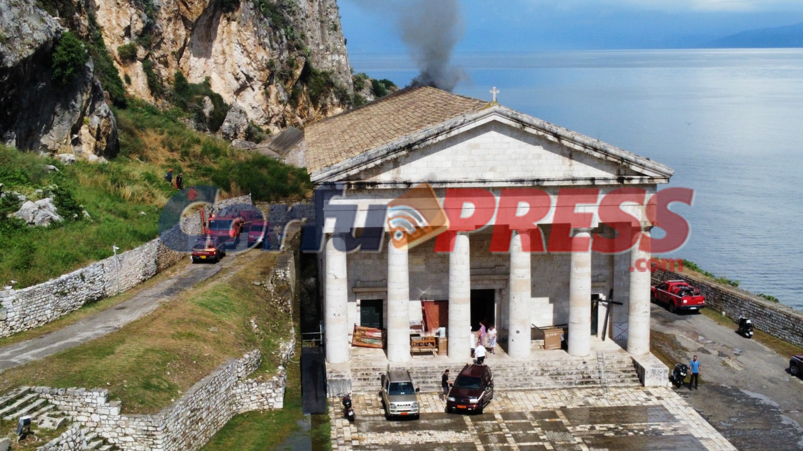 ΑΡΧΙΚΗ ΕΝΗΜΕΡΩΣΗ: Φωτιά ξέσπασε το μεσημέρι στον Ιερό Ναό Αγίου Γεωργιου στο Παλαιό Φρούριο από άγνωστη αιτία.