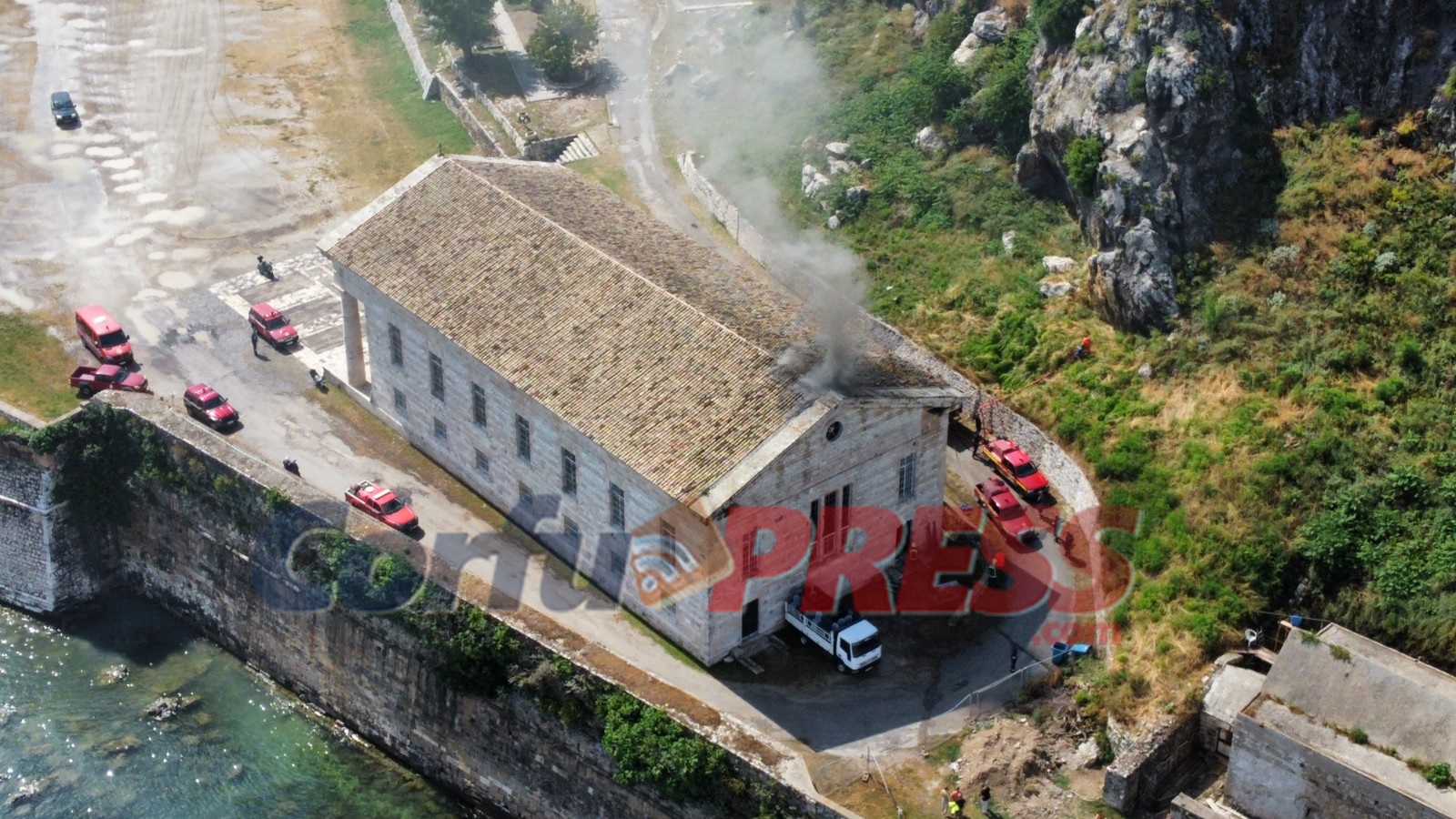 Πυρκαγιά έπιασε η σκεπή του Ιερού Ναού Αγίου Γεωργίου στο Παλαιό Φρούριο της Κέρκυρας. Η φωτιά ξέσπασε από άγνωστη αιτία, ενώ, αυτή τη στιγμή στο σημείο βρίσκονται ισχυρές δυνάμεις της πυροσβεστικής για να ελέγξουν την κατάσταση.