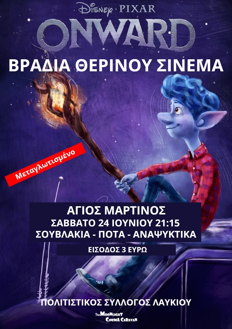 Ο πολιτιστικός σύλλογος και η κοινότητα Λαυκίου διοργανώνουν μια παραμυθένια βραδιά σινεμά με την ταινία της DISNEY <<ONWARD>> (μεταγλωτισμένο)