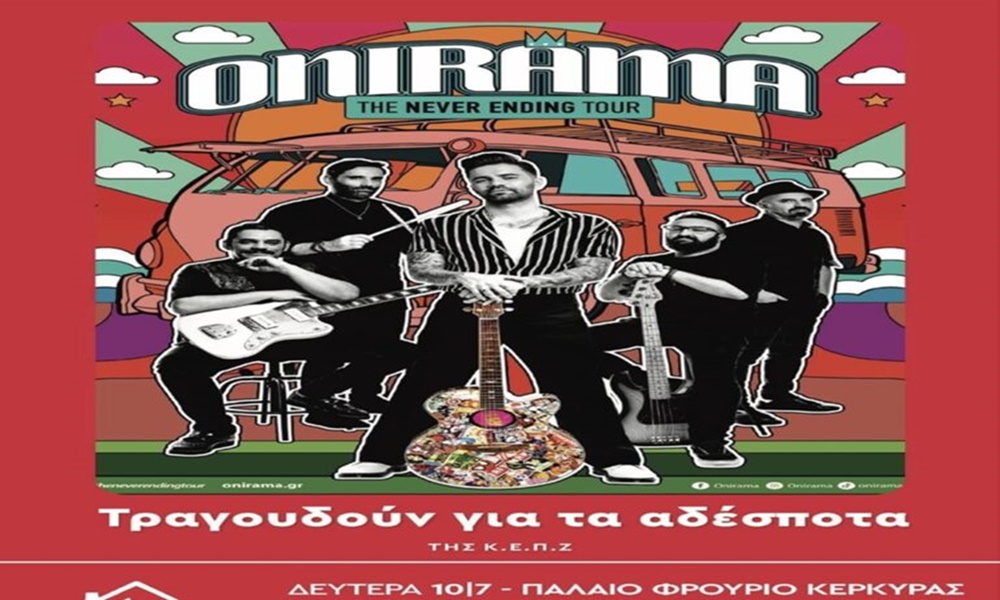 Συναυλία με το συγκρότημα ΟΝΙΡΑΜΑ διοργανώνει η Κερκυραϊκή Εταιρεία Προστασίας Ζώων στο παλαιό Φρούριο στις 10 Ιουλίου, με σκοπό την ενίσχυση του σωματείου προκειμένου να ανταπεξέλθει στις ανάγκες των αδέσποτων ζώων που φιλοξενεί (83 σκυλιά) στο καταφύγιο που διατηρεί από το 1975.