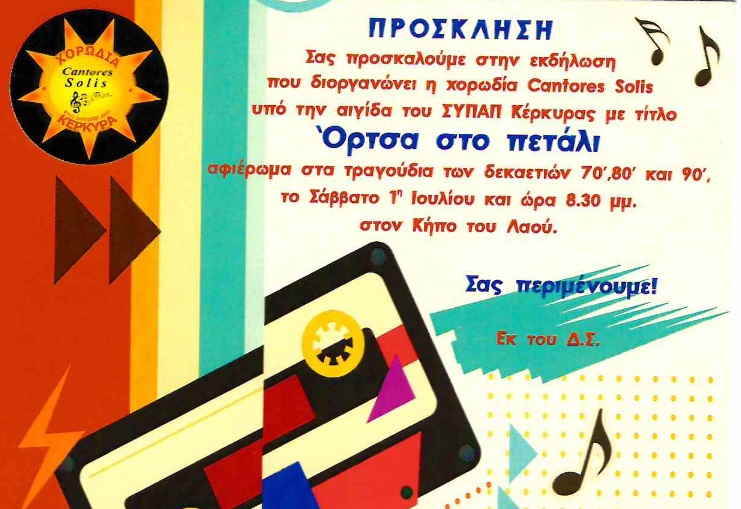H Χορωδία Cantores Solis διοργανώνει εκδήλωση υπό την αιγίδα του ΣΥΠΑΠ Κέρκυρας με τίτλο “Όρτσα στο πετάλι”.