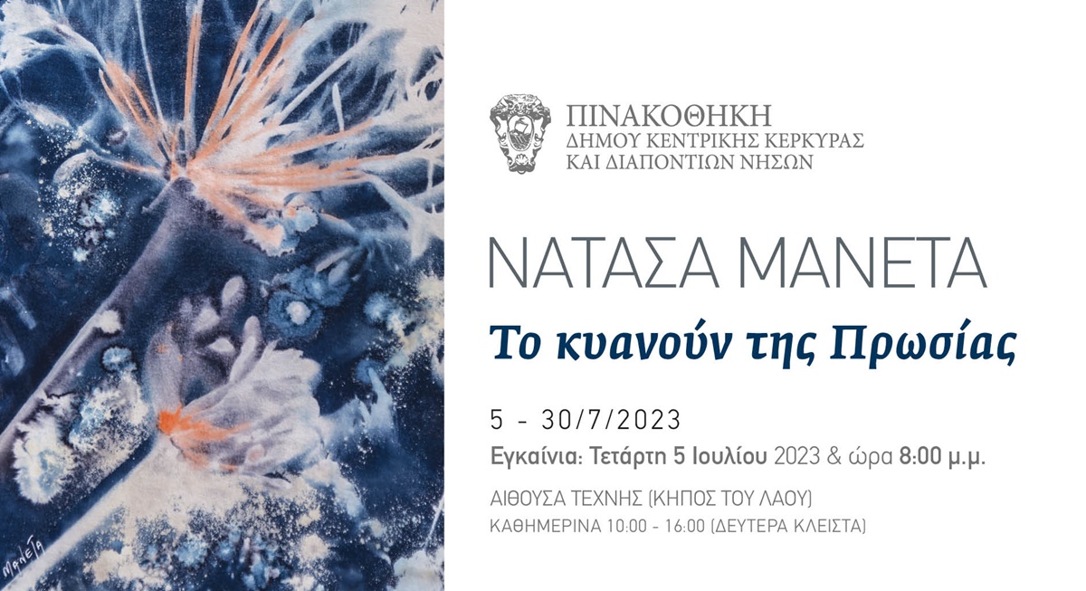 Τη δεύτερη ατομική έκθεση της Νατάσας Μανέτα παρουσιάζει η Πινακοθήκη Δήμου Κεντρικής Κέρκυρας & Διαποντίων Νήσων, στην Αίθουσα Τέχνης (Κήπος του Λαού) κατά την περίοδο 5 – 30 Iουλίου 2023.