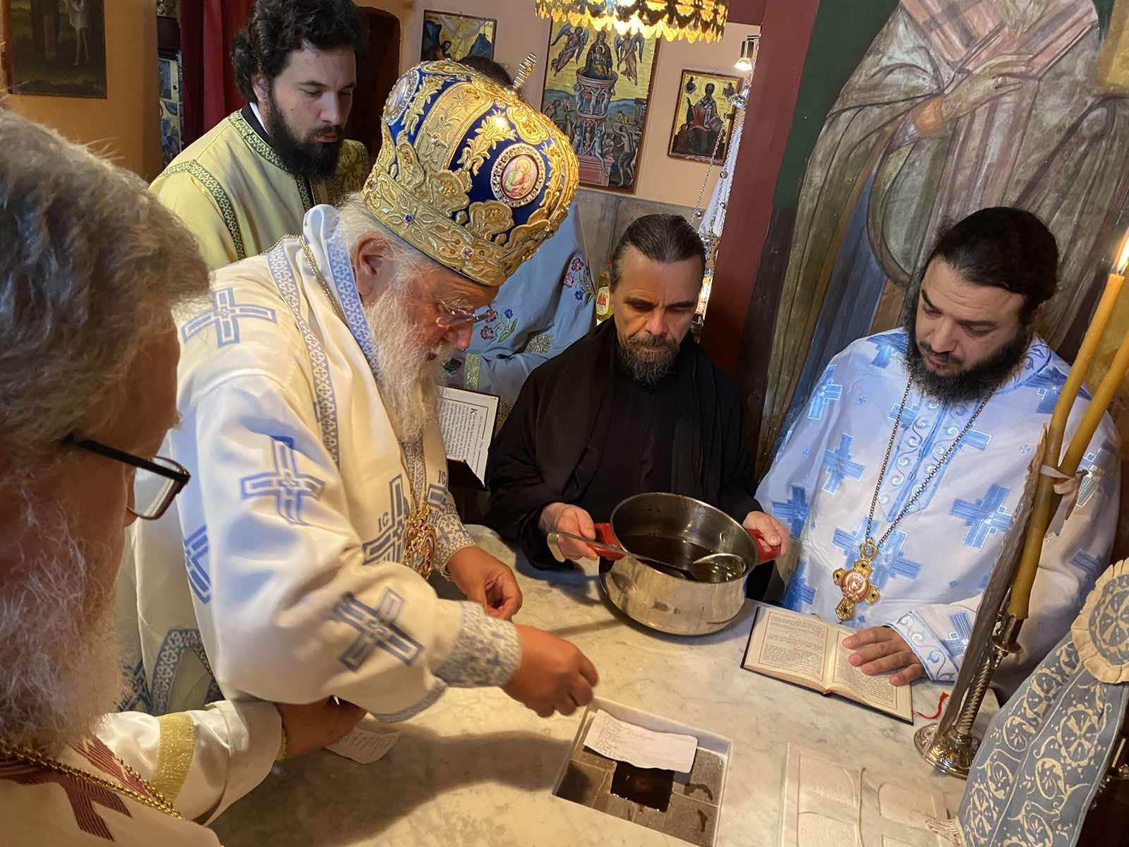 Σήμερα λοιπόν στην εορτή της Υπεραγίας Θεοτόκου που εορτάζει η Ιερά Μονή, ο Σεβασμιώτατος καθαγίασε το ιερό θυσιαστήριο που αντεκατεστάθη από το παλαιόν σεσαθρωμένον, τελώντας την ακολουθία επί διασαλεύση της Αγίας Τραπέζης.