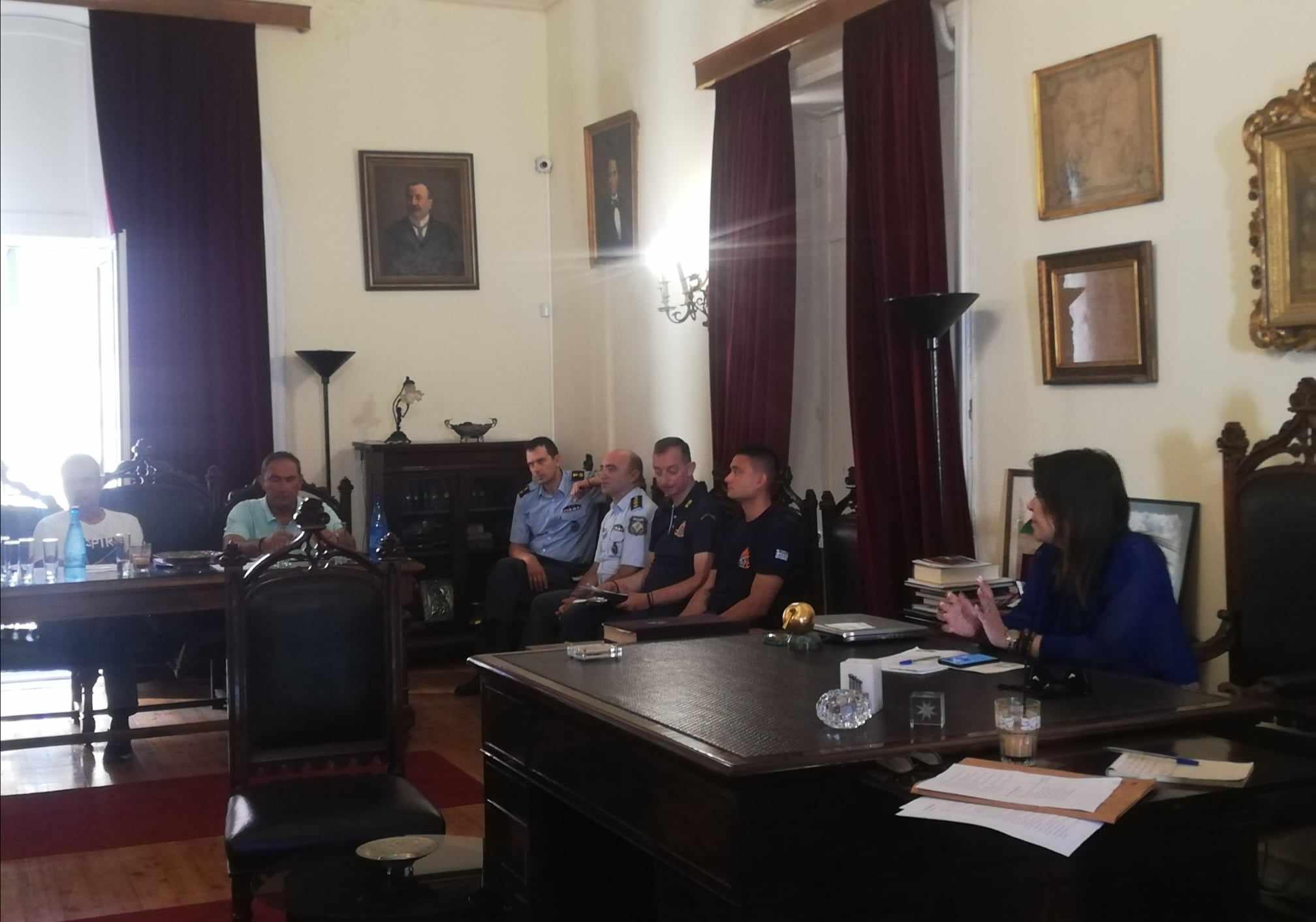Τη συνεδρίαση συντόνισε η Δήμαρχος Μερόπη Υδραίου και συμμετείχαν εκπρόσωποι της Πυροσβεστικής Υπηρεσίας, της Ελληνικής Αστυνομίας, του Λιμενικού Σώματος, του ΕΚΑΒ, της ΔΕΔΔΗΕ, της Εφορείας Αρχαιοτήτων και στελέχη της Πολιτικής Προστασίας του Δήμου Κεντρικής Κέρκυρας και Διαποντίων Νήσων.