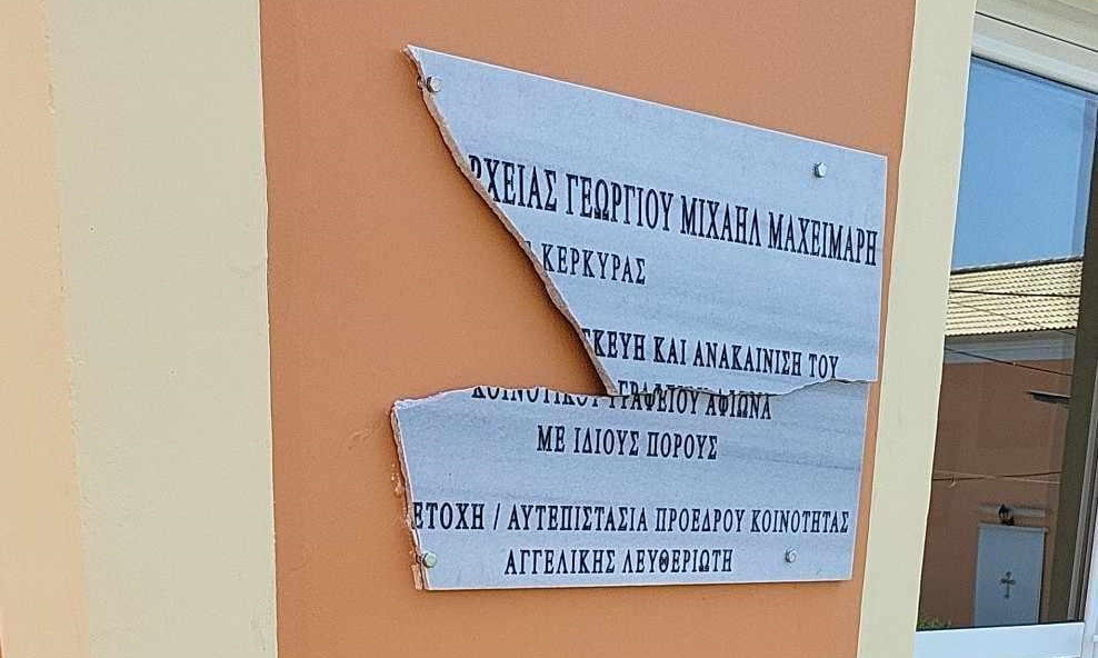 “Η μαρμάρινη επιγραφή στην είσοδο του κοινοτικού γραφείου Αφιώνα πλήρωσε το απερίγραπτο μίσος και εμπάθεια κάποιων μικρόψυχων, θρασύδειλων και ανεγκέφαλων” σημειώνει η δημοτική αρχή βόρειας Κέρκυρας.