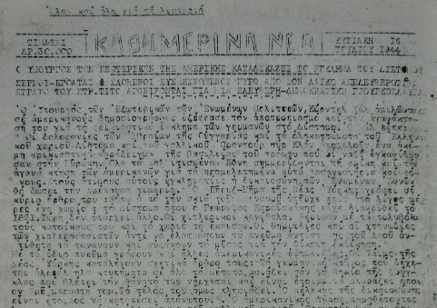 Έχει σωθεί ένα φύλλο αυτής της εφημερίδας, που ήταν το 292ο φύλλο της. Σώθηκε σε αρχείο ιδεολογικού αντίπαλου του ΕΑΜ και υποστηρικτή του αστικού καθεστώτος, ο οποίος σε άλλη πάλι «στημένη» δίκη είχε υπερασπιστεί τον κατηγορούμενο κάθε τόσο με ανυπόστατες κατηγορίες Αλέκο Πρίφτη και αργότερα σε βιβλίο του σκιαγράφησε, με θετικές αναφορές, την προσωπικότητα και την πλούσια δράση του κορυφαίου μαχητή της κερκυραϊκής Εθνικής Αντίστασης. Βρίσκεται στα Αρχεία Νομού Κέρκυρας, στο Παλαιό Φρούριο της πόλης.