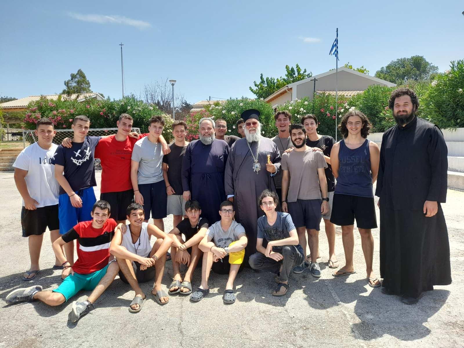 Ο Σεβασμιώτατος επιστρέφθηκε το σύγχρονο και ανακαινισμένο εκ βάθρων κατασκηνωτικό κέντρο της Ιεράς Μητροπόλεως Κερκύρας προκειμένου να ευλογήσει την Γ’ κατασκηνωτική περίοδο η οποία αποτελείται από αγόρια γυμνασίου και λυκείου. Τη μεγάλη του χαρά εξέφρασε ο Σεβασμιώτατος όταν αντίκρισε τον νεανικό παλμό 120 παιδιών τα οποία συγκεντρωμένα τον ανέμεναν.