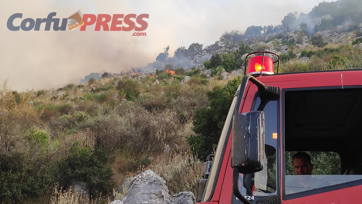 Πολύ δύσκολη είναι η κατάσταση στην ορεινή βόρεια Κέρκυρα καθώς οι φλόγες κατακαίνε σε πολλά μέτωπα και σε απρόσιτες περιοχές.