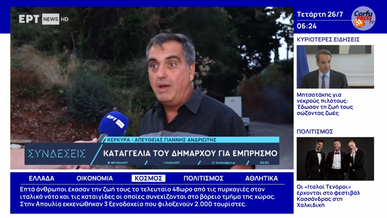 Ήταν άραγε επιχείρηση εμπρησμού ή ένα τυχαίο περιστατικό; Πάντως, συνέβη μπροστά στα μάτια του αντιδήμαρχου Βόρειας Κέρκυρας Ν. Μουζακίτη ο οποίος, την ώρα που το συνεργείο της ΕΡΤ είχε ζωντανή σύνδεση με το χωριό Λούτσες, ένα δέντρο τυλίχθηκε στις φλόγες χωρίς να υπάρχει φωτιά μέχρι εκείνη τη στιγμή και ένας άνδρας έφυγε τρέχοντας!