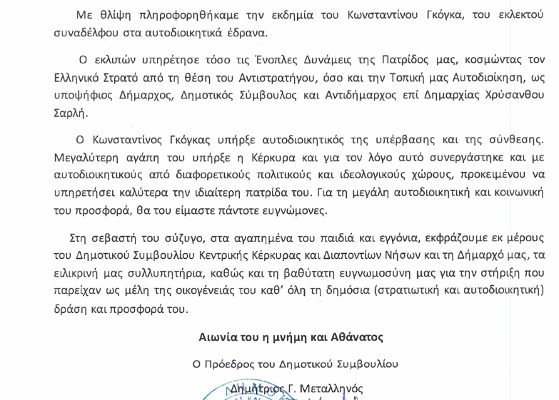 Εκφράζω τα συλλυπητήριά μου στην οικογένεια του Κωσταντίνου Γκόγκα, ο οποίος έφυγε από τη ζωή, αφήνοντας πίσω του ένα σημαντικό κοινωνικό αποτύπωμα.