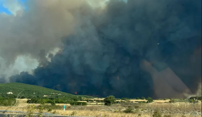“Εξελίσσεται δασική πυρκαγιά. Οι καπνοί κατευθύνονται στην περιοχή σας. Παραμείνετε σε εσωτερικούς χώρους. Κλείστε πόρτες και παράθυρα”, αναφέρει το μήνυμα του 112.